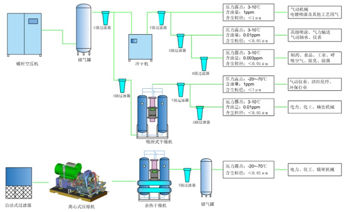 2. 吸附式干燥机工艺技术先进,气流分布均匀,净化收率高;